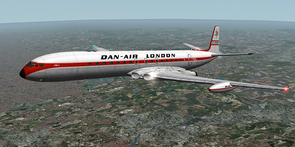 B.O.A.C. may have been first to operate Comets, and set records, but Dan Air had no fewer than 49 Comets and flew more hours than any other airline. Chances are, if you have ever flown in a Comet, it was with Dan Air. I chose the initial livery, because it was when the aircraft had just been bought, many still with polished metal fuselages and wings from their first owners.