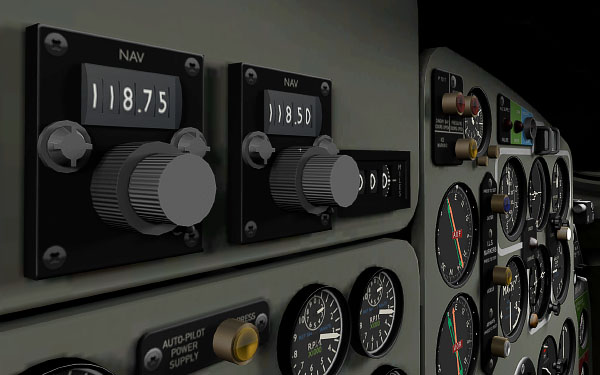 Fig. 4 (Foreground) Modern NAV controllers (actually supposed to be DME controllers, but they are locked to the NAV frequencies in X-Plane), also with a rolling gauge.